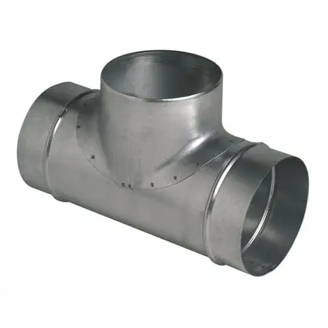 Té équerre en acier galvanisé galva permettant le raccordement de deux branches de réseaux, de diamètres différents, avec un angle de 90°.